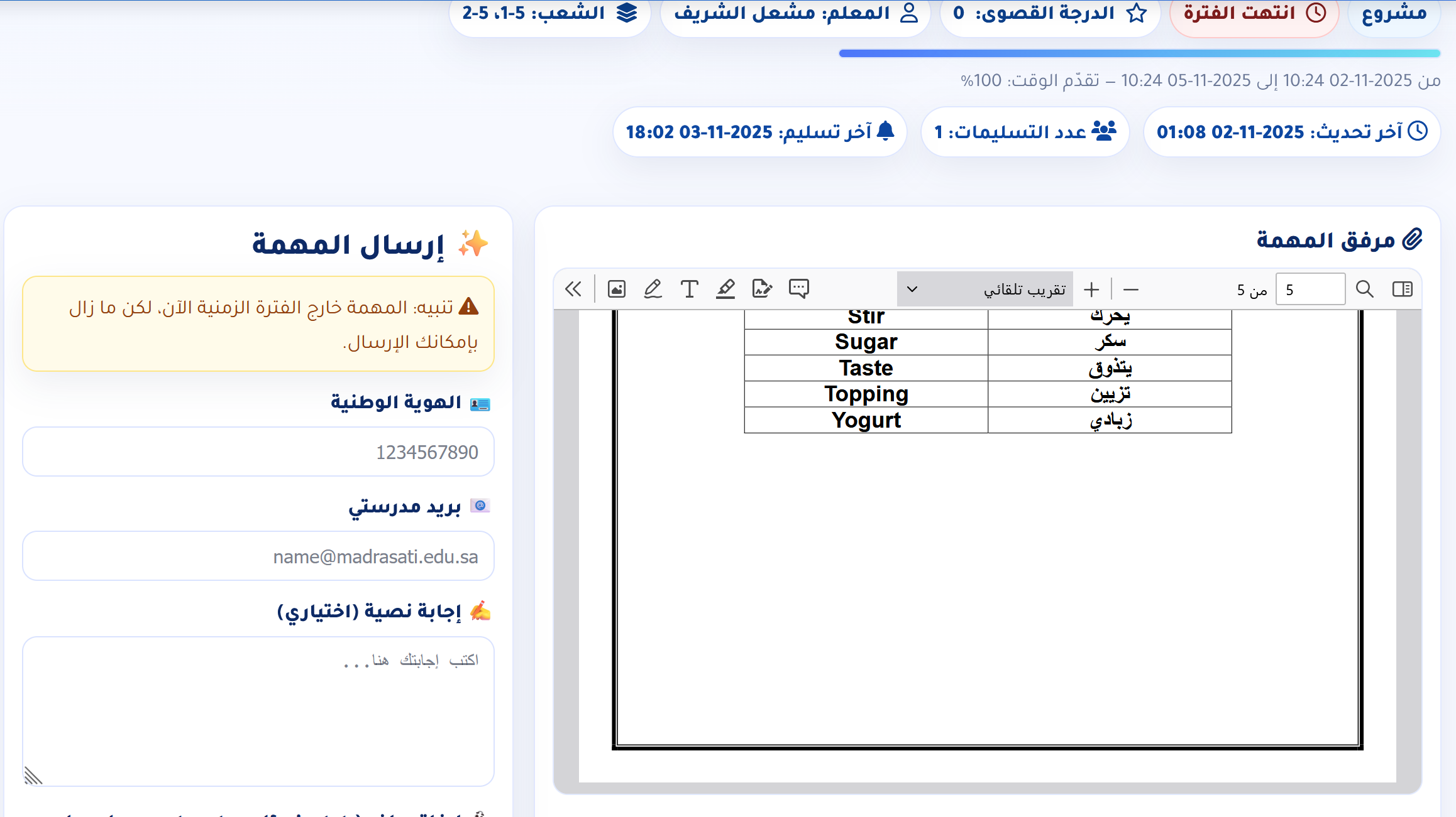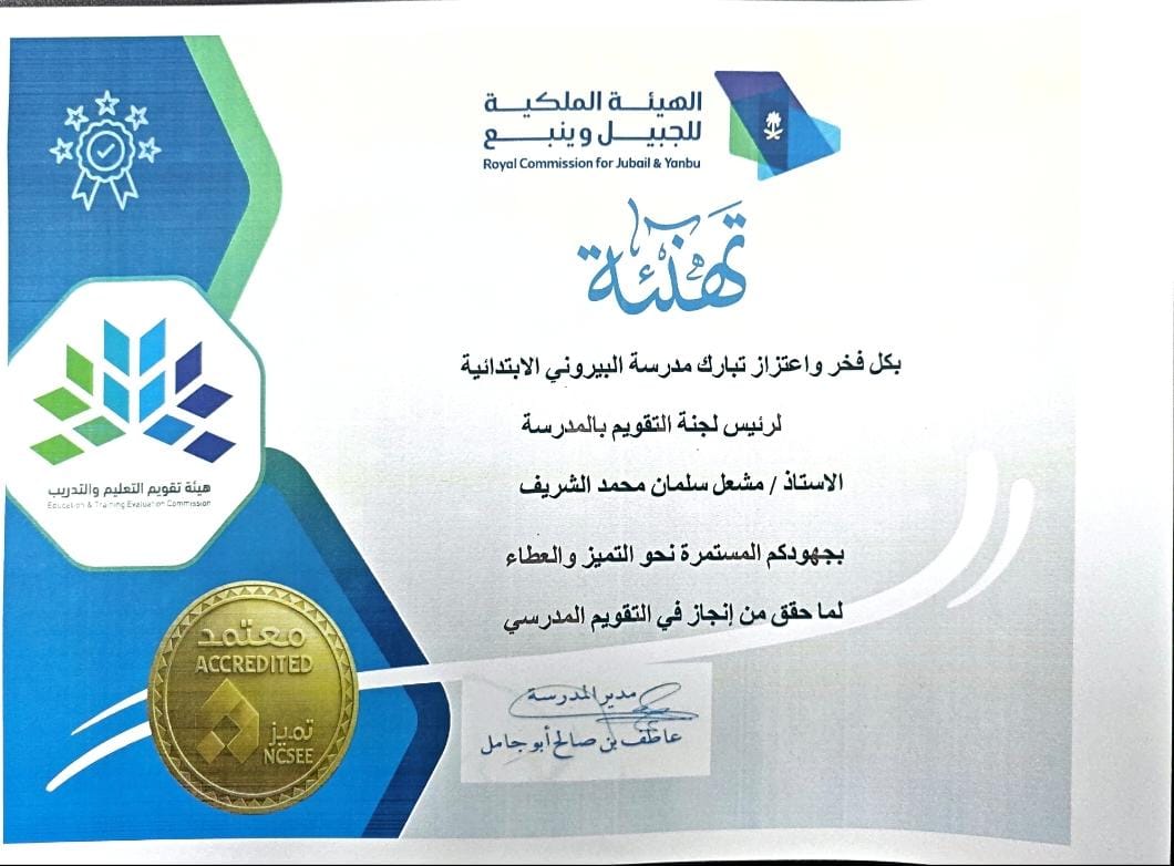 ملف أداء معلم اللغة الإنجليزية – مدرسة البيروني الابتدائية